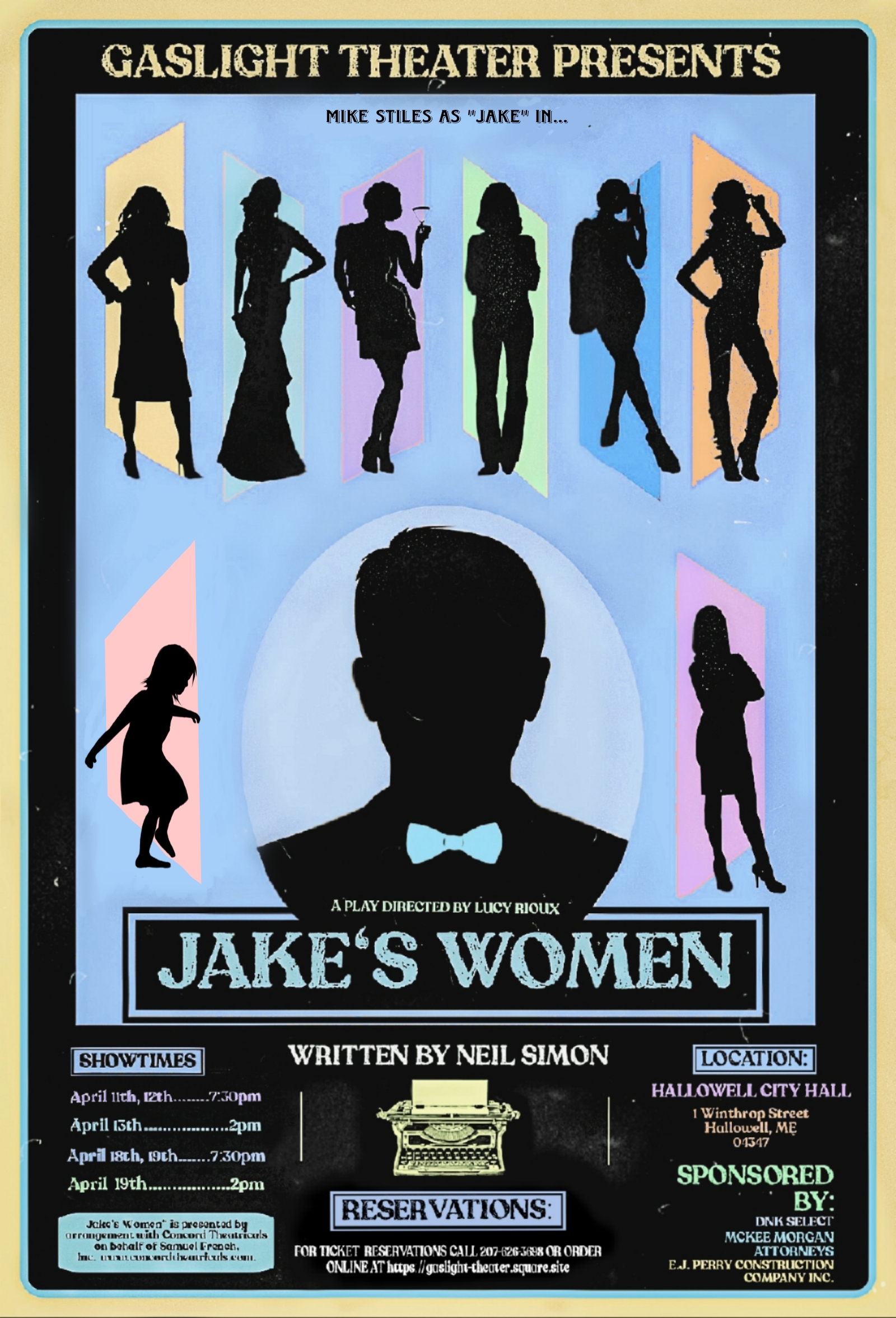 Gaslight Theater’s production of “Jake’s Women” is sponsored by McKee Morgan Law in Augusta. Gaslight Theater’s 2025 season has been made possible by Season Sponsors E.J. Perry Construction Company and DNK Select Auto Sales